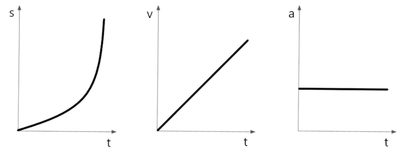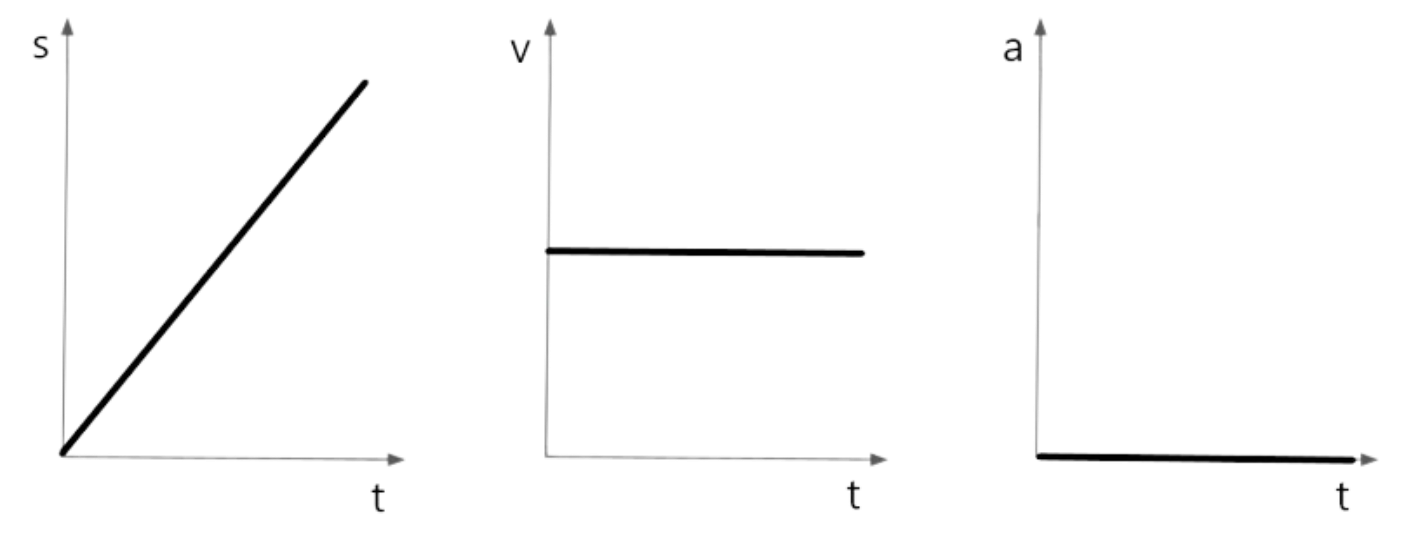 - enakomerno gibanje (hitrost se s časom ne spreminja)