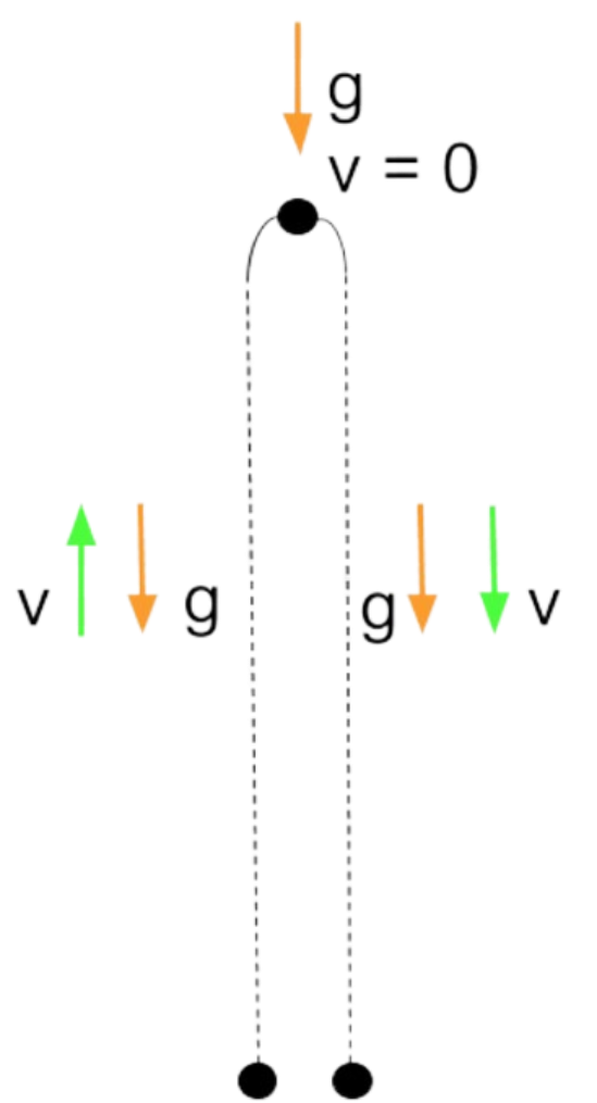 - v smeri je gibanje enakomerno pospešeno (konstanten negativen gravitacijski pospešek )