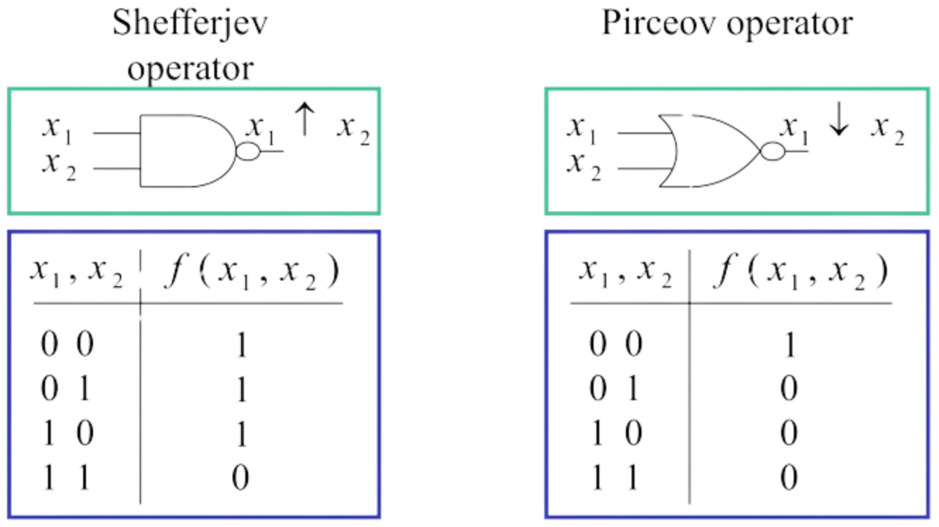Popolna Shefferjeva normalna oblika (PSNO): Shefferjevi mintermi (), povezani s Shefferjevim operatorjem