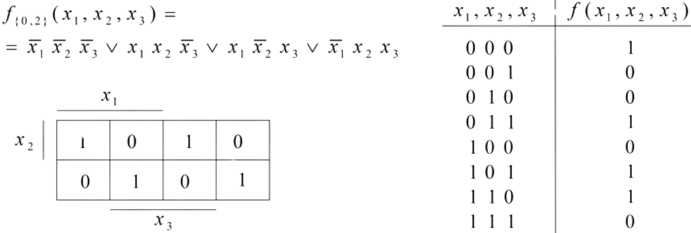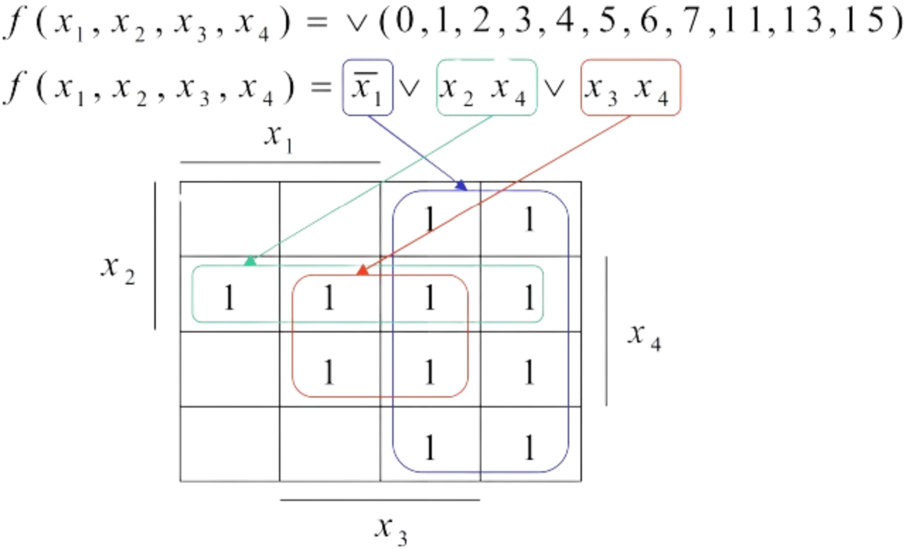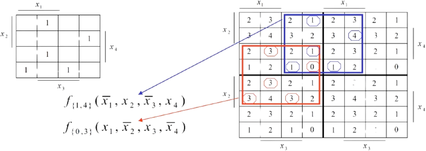 - S pomočjo razširjenega Veitchevega diagrama - številke v poljih predstavljajo število enic v vhodnem vektorju: