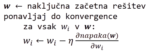 - gradientni spust - približek, a veliko hitrejši od analitičnega