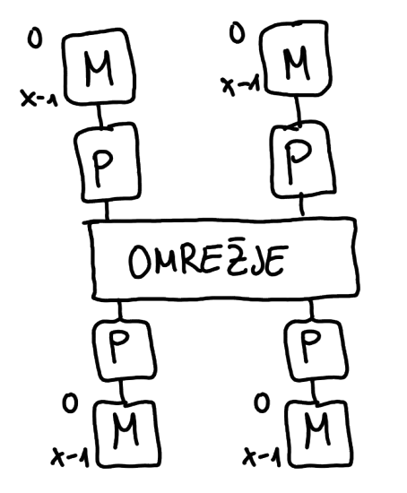 - gruče: na vsakem vozlišču svoj OS
