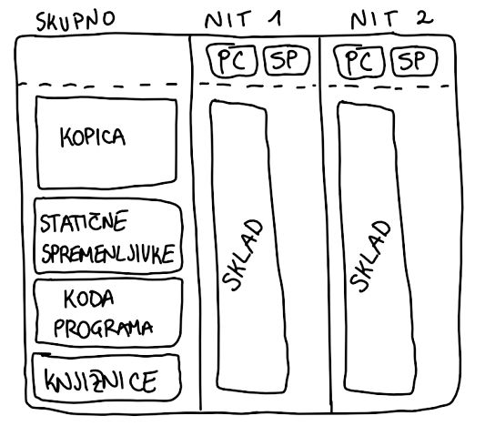 Na niti se procesi izvajajo sinhrono, z več niti ustvarimo več asinhrono delujočih sinhronih tokov
