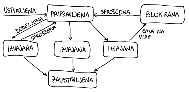 Pripravljena: čaka v bazenu niti, da ji razvrščevalnik dodeli procesor