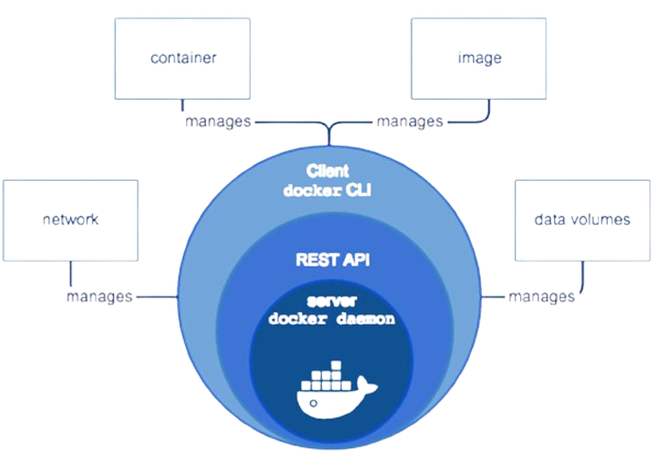 Docker server/deamon: izvaja gradnjo, izvajanje in distribucijo Docker vsebnikov