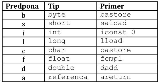 iload_0… 1. lokalno spremenljivko integer prenesi na skladfstore_2iload <lokalna_spremenljivka>/astore <lokalna_spremenljivka>