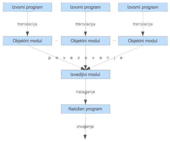 - izhodni objektni modul: združi vhodne module razrešene vse medsebojne reference