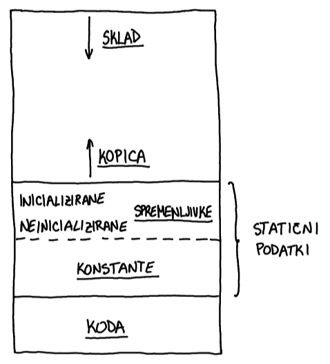 Vrednosti na skladu dobimo z odmiki / na kopici dobimo preko kazalcev nanje