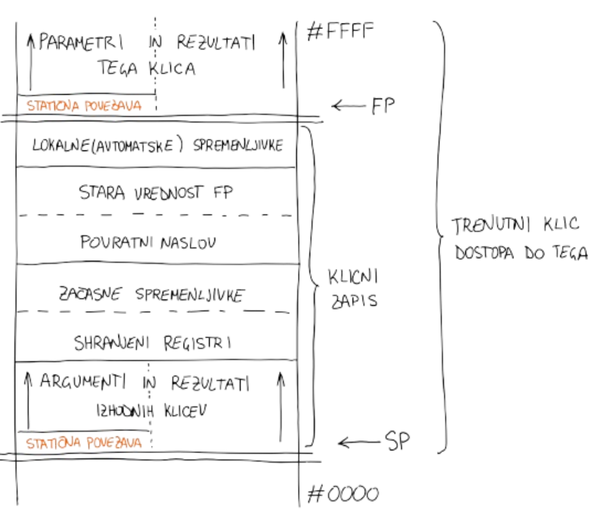 Klicni zapis / okvir sklada: del pomnilnika (sklad), ki pripada funkciji med izvajanjem