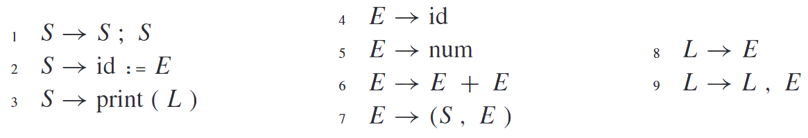 - vmesni: pojavi se na levi strani produkcije, en mora biti začetni