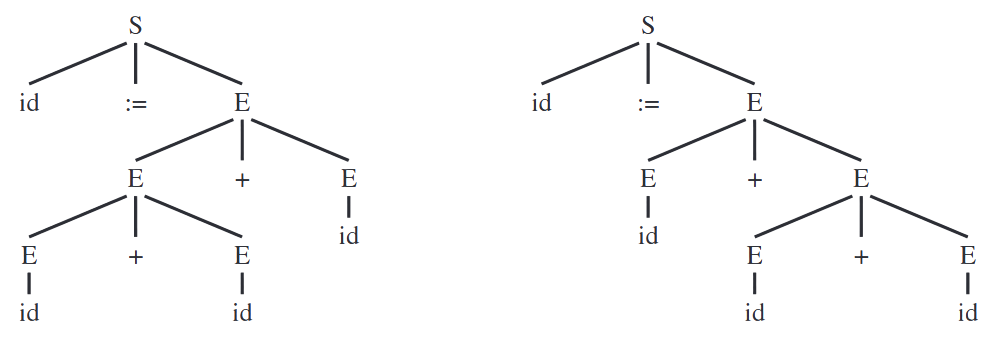 Primera različnih dreves izpeljave istega nizaid := id + id + id: