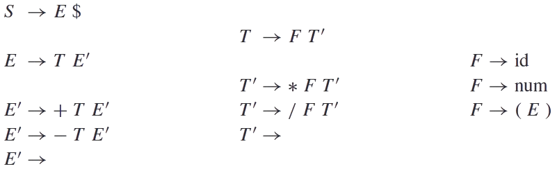 - vmesne simbole - naredimo razvoj glede na tabelo produkcij glede na prvi vhodni simbol